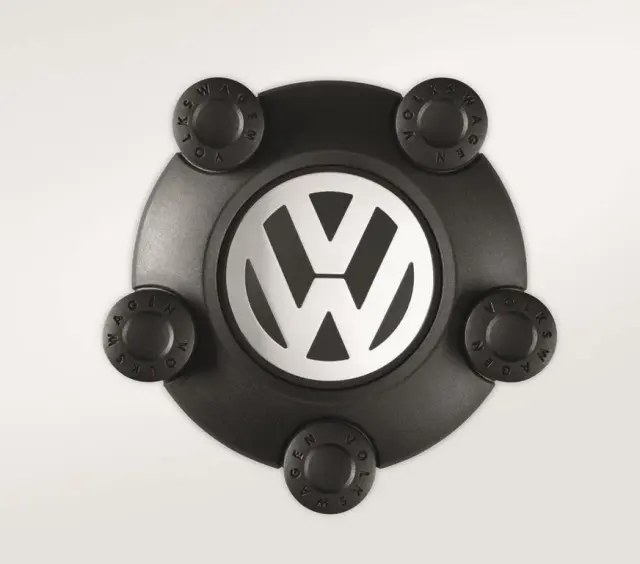 Factory plastic center caps for winter steel wheels. Center cap features integrated wheel bolt covers and silver VW Logo. Kit includes 4x center caps.